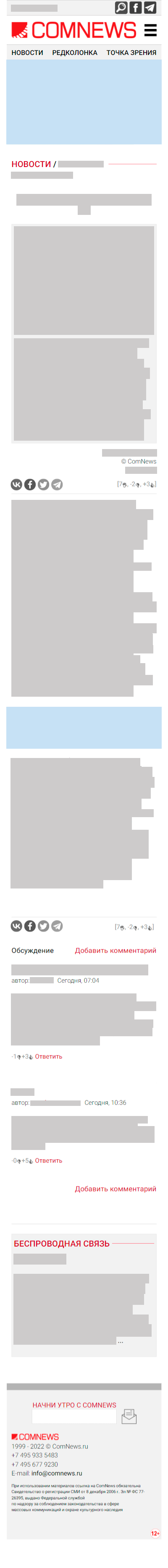 Мобильная версия ComNews.ru доступна на всех современных коммуникационных устройствах и платформах.
