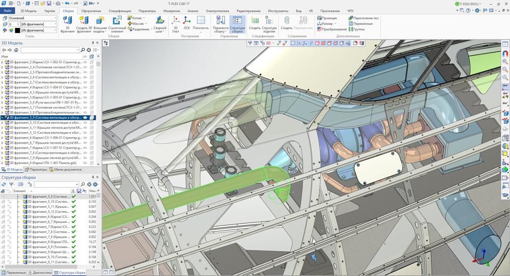 Рис. 9. Пример сборочного компонента. Фюзеляж самолета в T-FLEX CAD.