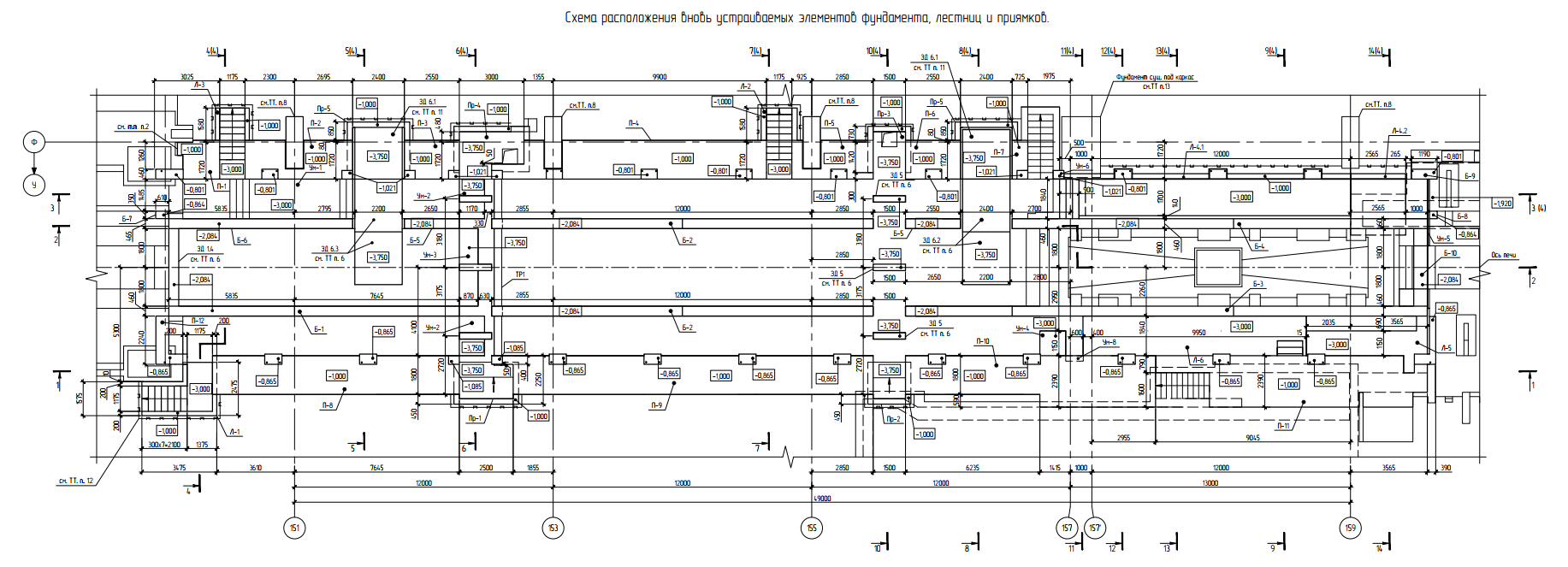 Чертеж разработанного фундамента роликовой печи
