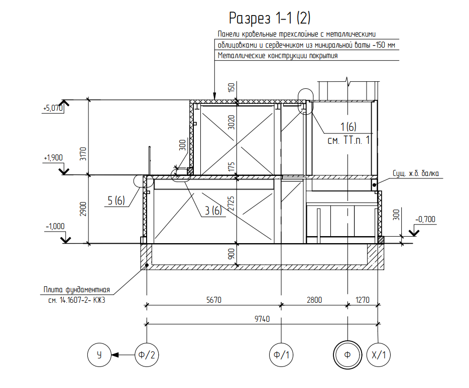 Чертеж архитектурного разреза здания ПСУ