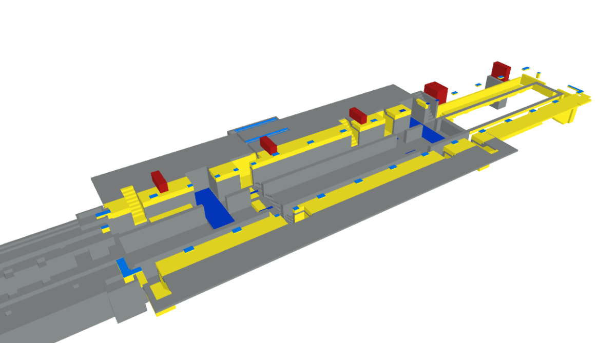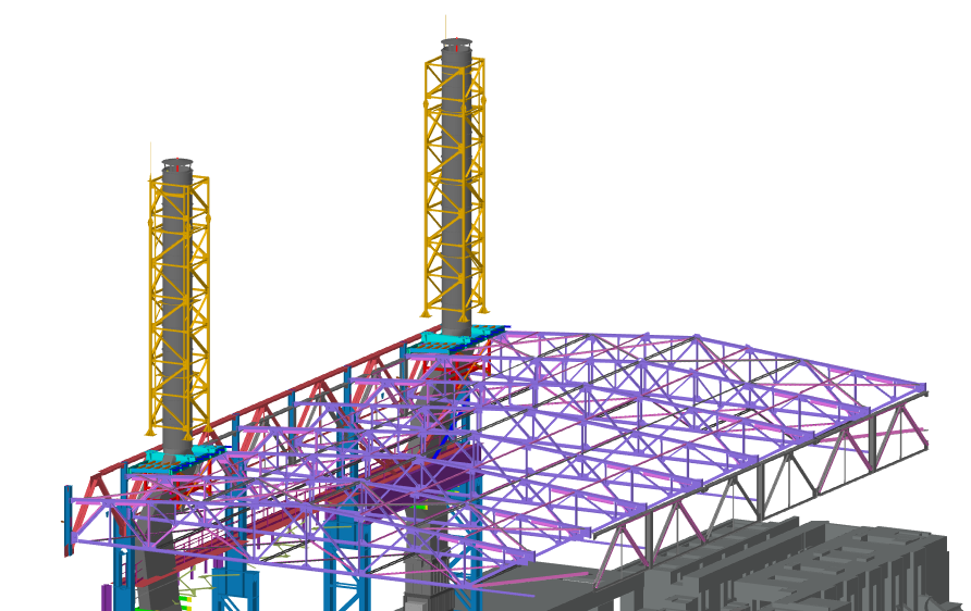 На следующем этапе - проектирование здания пункта силового управления (ПСУ) - мы занимались не только конструктивными, но и архитектурными решениями, а также проводили анализ отклонений, возникающих в ходе строительно-монтажных работ. Наша пространственная модель позволила разработчикам металлоконструкций (КМД) ускорить процесс создания проекта и его передачу на стройку, что способствовало быстрому запуску производства.