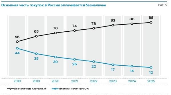 "Судя по данным рейтинга BCG, значение в 88% - не предел. В самом ЦБ РФ ранее прогнозировали, что к 2030 г. доля безналичных платежей в России вырастет до 90%, но далее, по всей видимости, до 100% пока регулятор не намерен наращивать долю платежей по "безналу" и совсем вытеснять наличные деньги из оборота. Доля безналичных платежей обязательно будет расти по мере цифровизации экономики, развития новых форм платежей - не только банковская карта или денежные переводы через мобильный банк и мобильное приложение, но и оплата по биометрии, по QR-коду, наконец, с 1 сентября 2026 г. в обращение в России войдет цифровой рубль", - заметила Наталья Мильчакова.